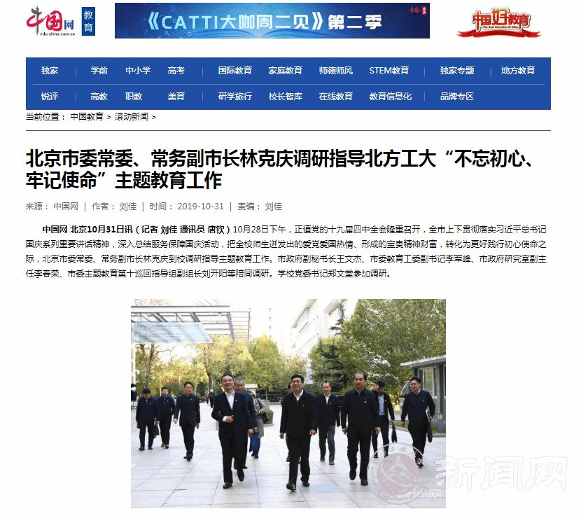 10月28日,北京市委常委、常务副市长林克庆一行来到永利官网调研指导“不忘初心 牢记使命”主题教育工作,听取了校党委书记郑文堂所做的工作汇报,实地参观了大学生创新实践基地、校史馆等地,对永利官网开展主题教育取得的成效给予积极肯定,并提出下一步工作要求。人民网、中国网、《北京日报》、《北京新闻》、千龙网等媒体进行了报道。
