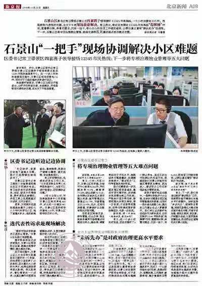 11月21日,石景山区委书记常卫带领石景山区四套班子领导悉数出现在12345市民热线服务中心。在一个多小时的热线接通过程中,石景山区领导共接电116件,同时对于已经处理的诉求进行回访。热线接听结束后,石景山区立即召开现场会,分析评估热线内容,当场解决,并选取较有代表性的问题,在当天下午现场查看。