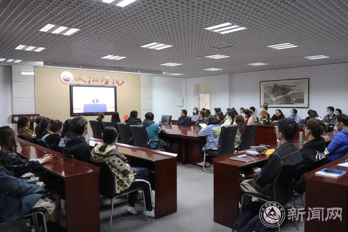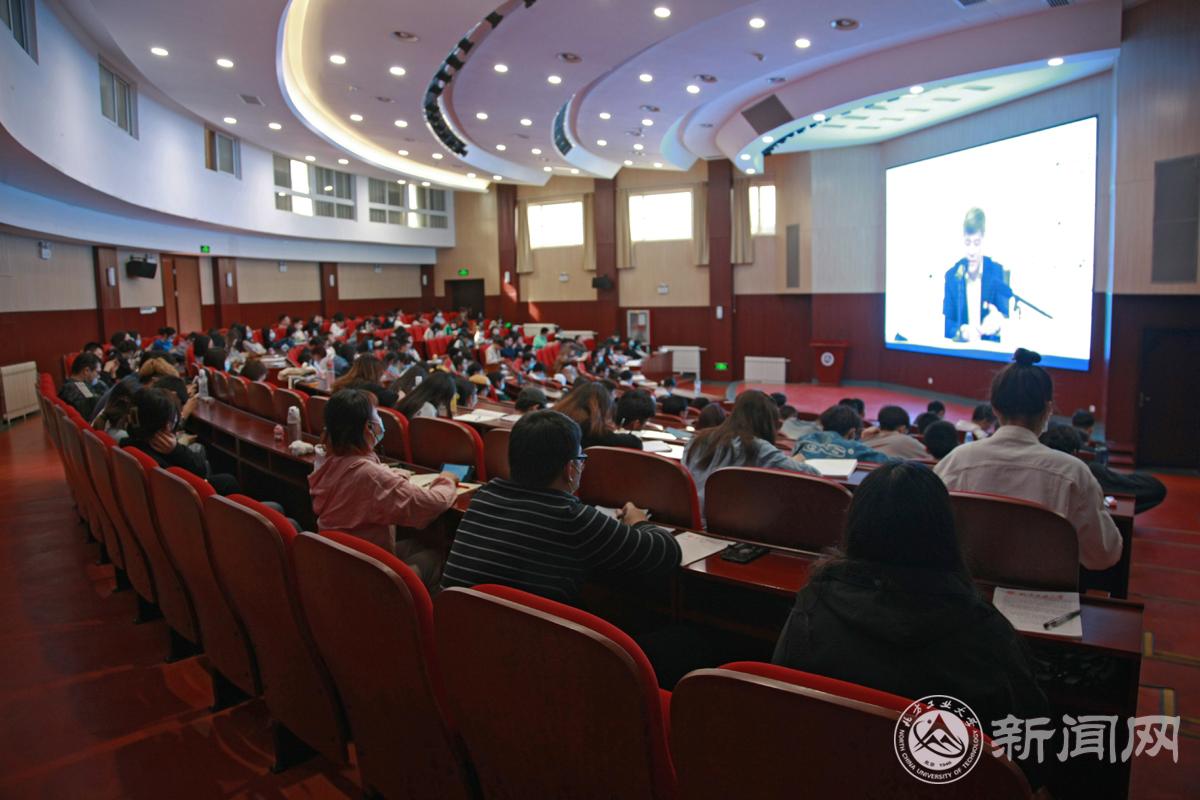 学校在文化会堂设立了学生分会场,组织没有其他教学安排的学生进行集中学习。部分学院将教师理论学习和学生理论学习结合起来,师生共同进行学习。