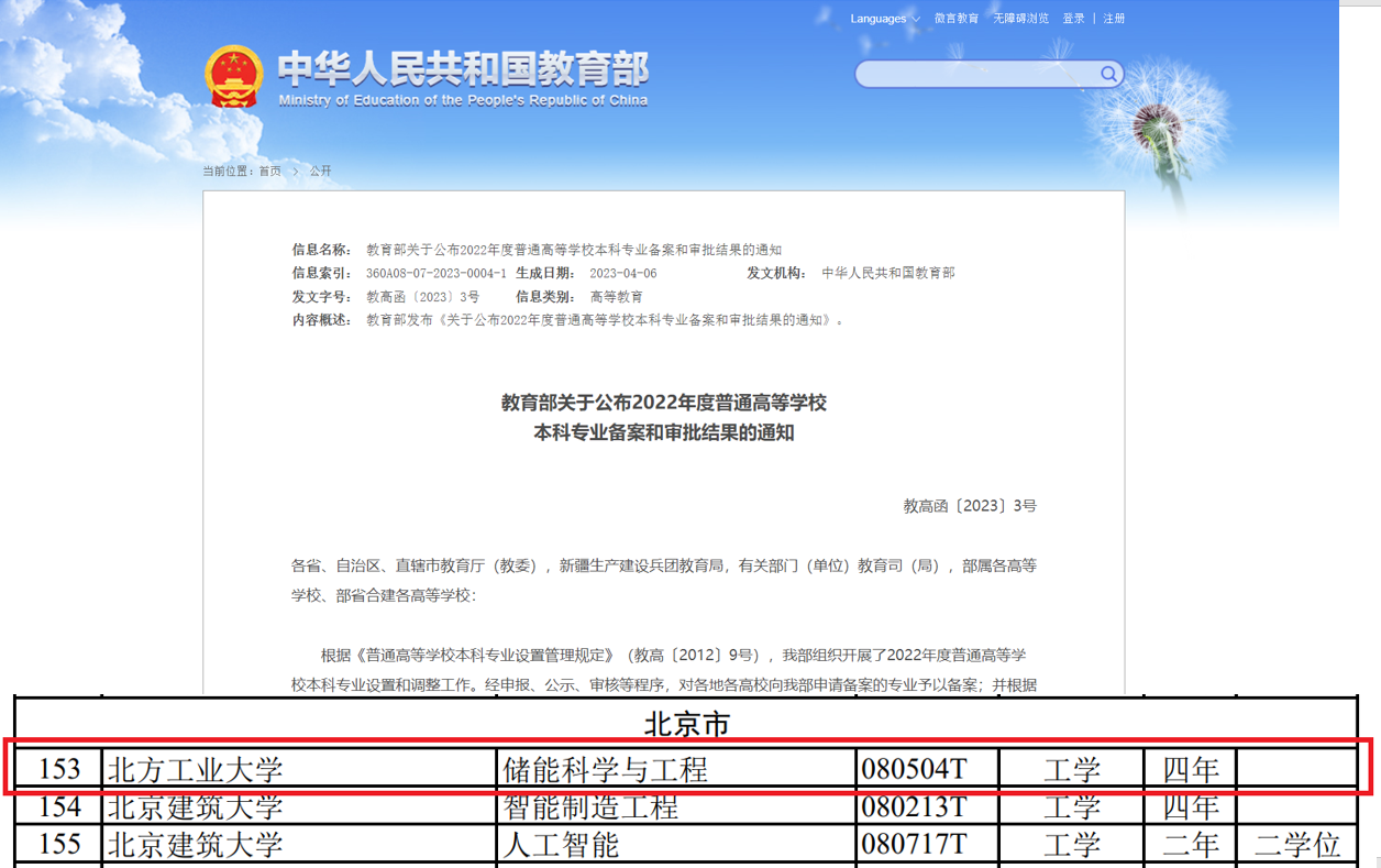 4月6日,教育部发布《关于公布2022年度普通高等学校本科专业备案和审批结果的通知》,永利官网成功获批储能科学与工程本科新专业。