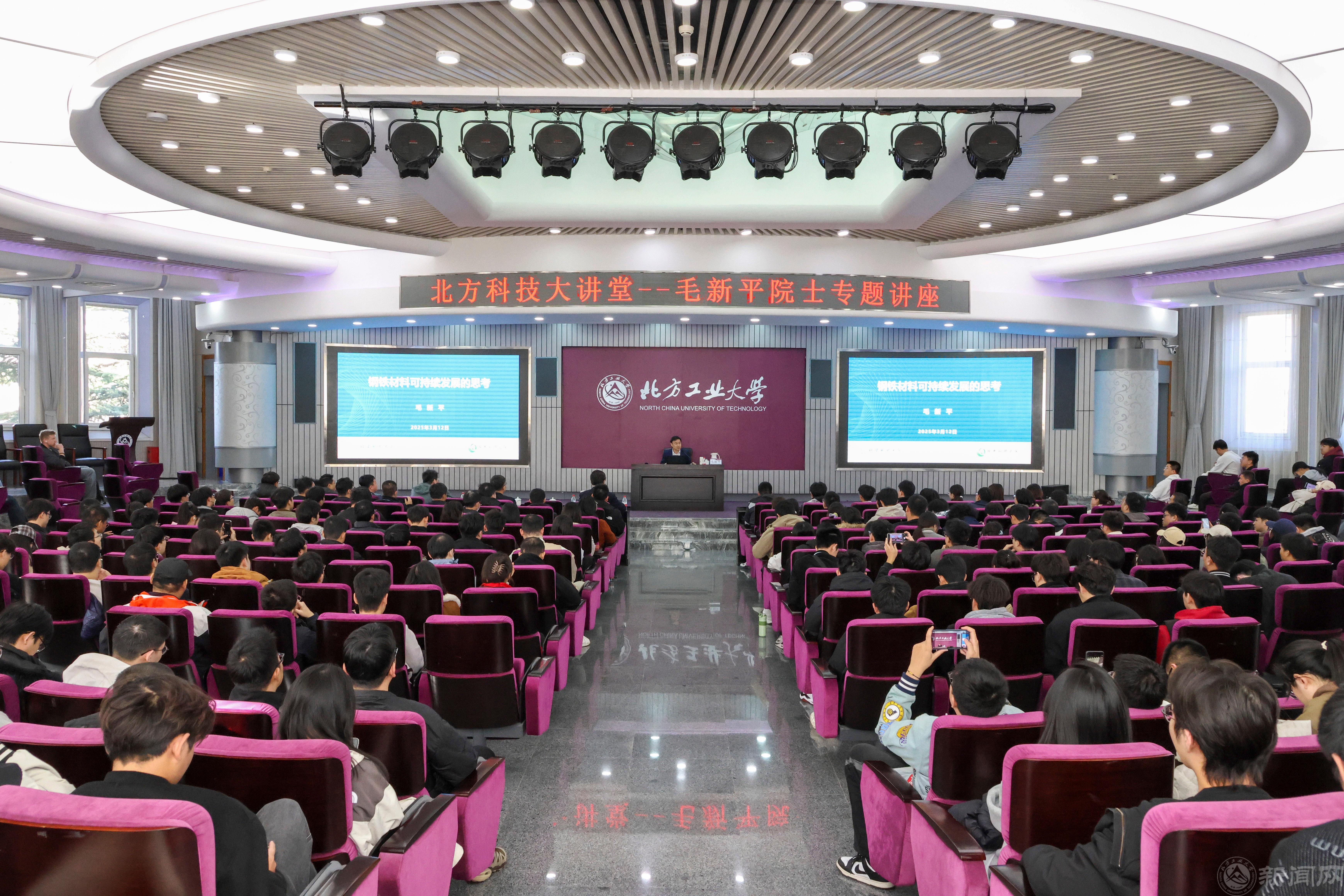 3月12日,北方科技大讲堂第8讲迎来中国工程院院士、北京科技大学碳中和研究院院长毛新平院士的专题报告。毛新平院士以《钢铁材料可持续发展的思考》为题,为永利官网机械与材料工程学院及相关学院的300余名师生带来精彩的主旨演讲。党委副书记、校长张立峰主持报告会。