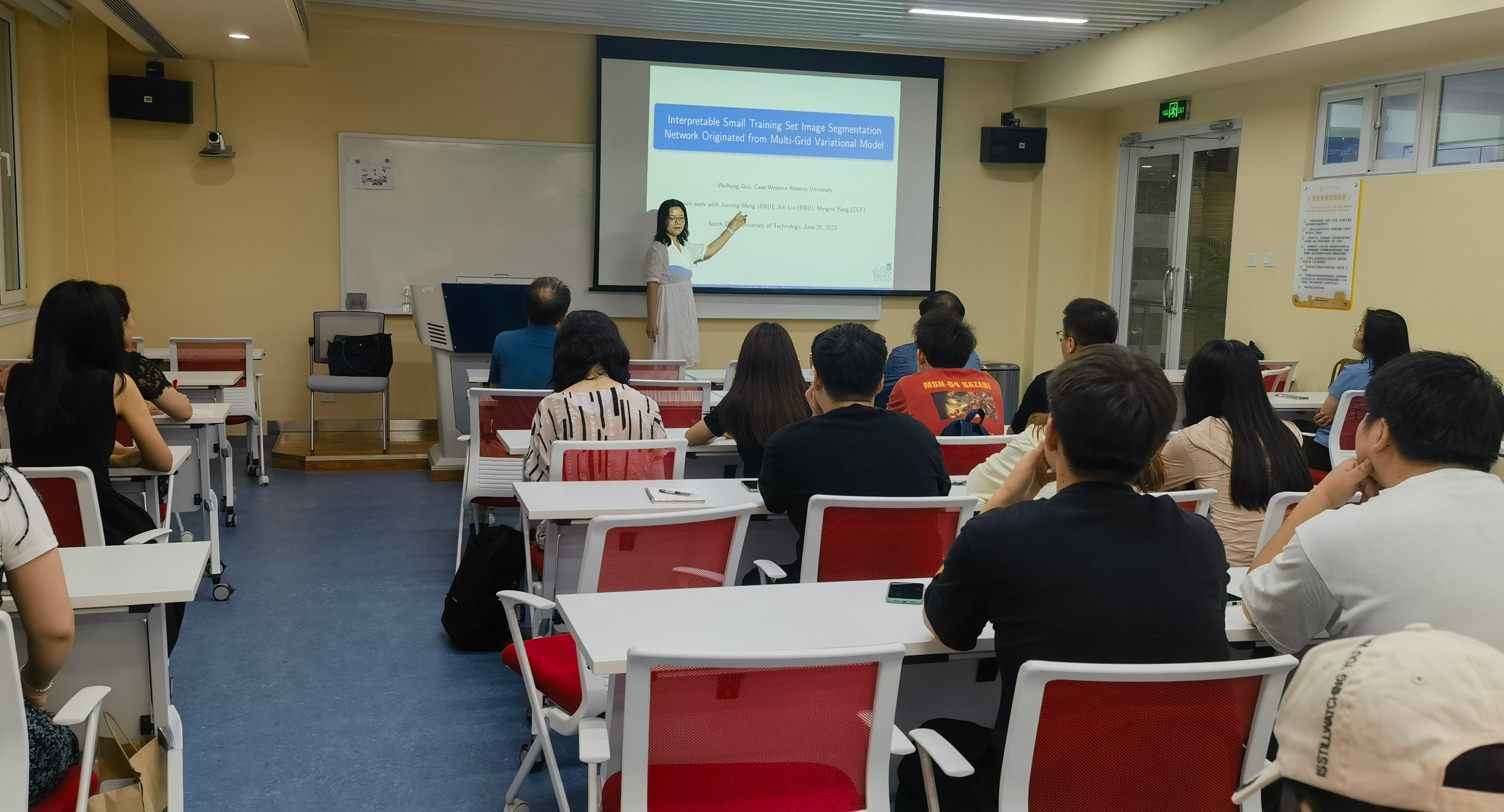 应理学院邀请,6月28日上午,美国凯斯西楚大学应用数学系系主任郭卫红教授来永利官网讲学,在广学楼406教室为永利官网师生做了题为“基于多网格变分模型的可判断小训练集图像分割网络”的学术报告。报告由理学院院长李冱岸主持。郭卫红教授主要介绍了医学成像领域中的图像分割方法,以及深度学习方法在图像分割中的具体应用。特别介绍了用数据自适应的广义可学习正则项代替了MS模型中手工正则项,并使用多网格框架来展开MS模型,获得了...