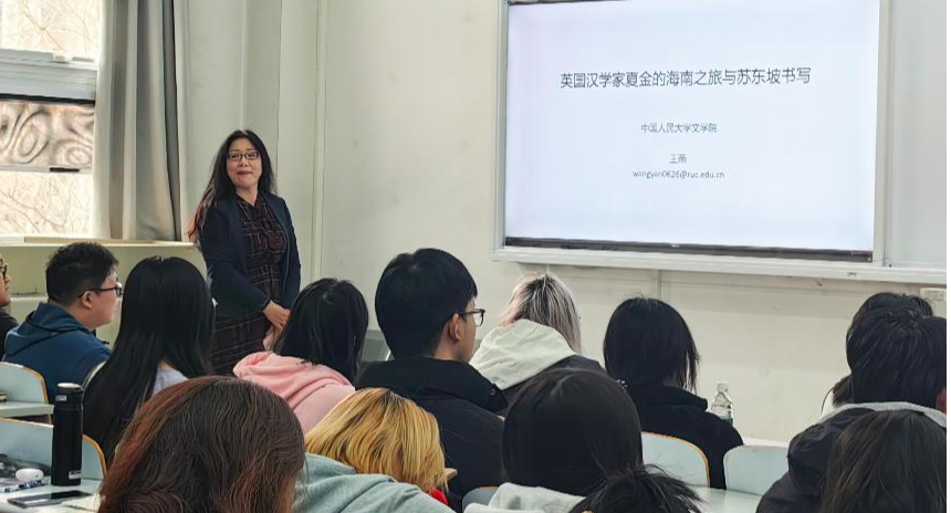 3月13日,304永利集团官网入口春霖美育讲堂第17期在瀚学楼209举行。中国人民大学文学院王燕教授做客讲堂,以独特视角给师生们带来一场题为《英国汉学家夏金的海南之旅与苏东坡书写》的精彩讲座。讲座由文法学院中文系王德岩副教授主持。王燕教授聚焦维多利亚时代的苏东坡书写史,从历史语境出发,以时代角度出发强调其“自我复制”的合理性,提出全新视角。她不仅褒奖了学者对于探索陌生国度、理解学习东方文化的激情,更感慨他对于“...