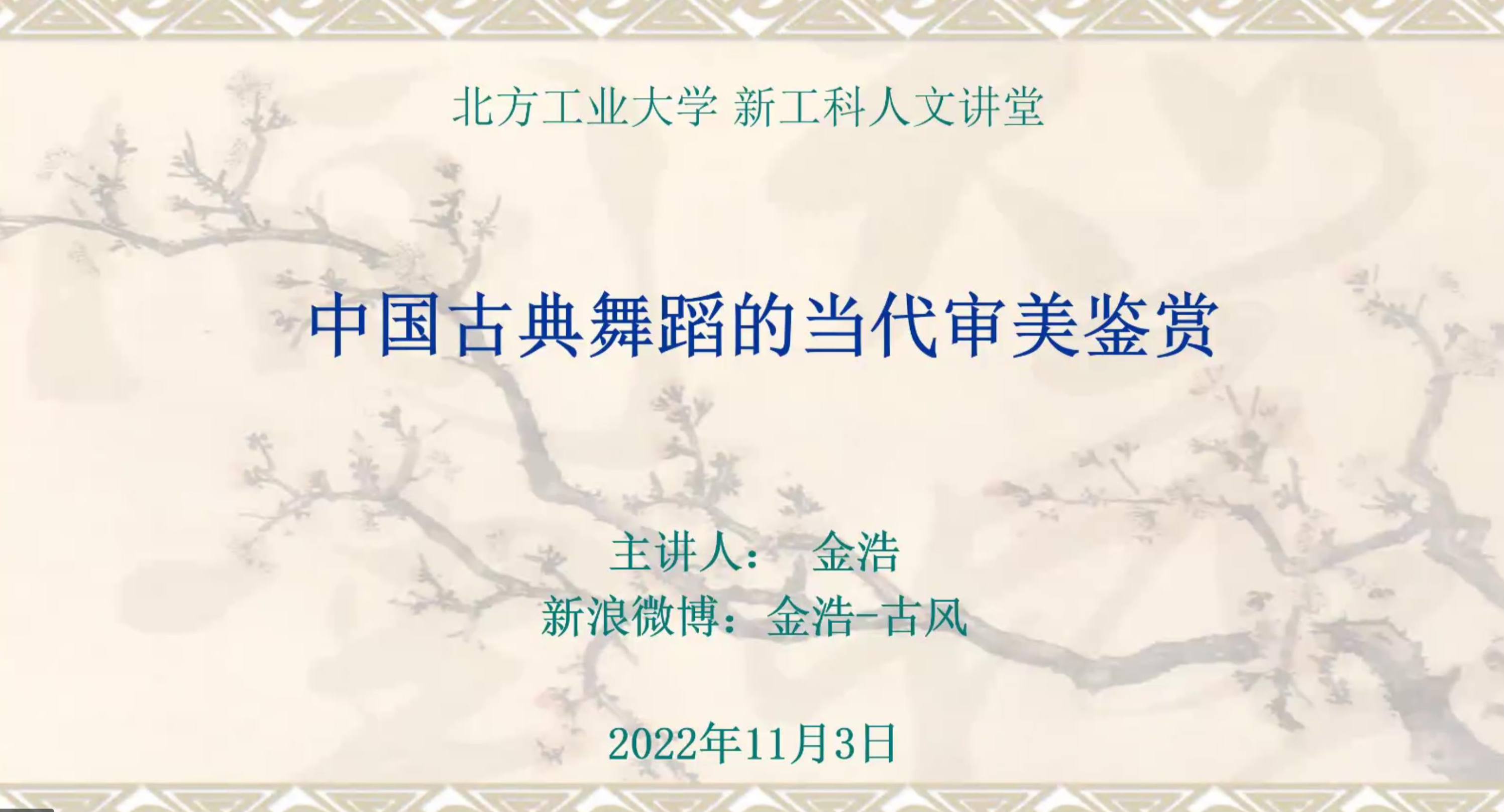 11月3日下午,新工科人文讲堂之“中国古典舞蹈艺术欣赏”顺利举办。本讲特邀中国艺术研究院舞蹈所研究员金浩教授主讲。机械与材料工程学院等学院160余名师生参加了本次讲座。机械与材料工程学院党委书记王文革主持了讲座。在本次讲座中,金浩教授从什么是身韵、身韵如何对传统舞蹈再创造、中国古典舞的审美法则三方面对中国古典舞蹈的当代审美进行了分析与阐述。通过对三支传统舞蹈作品的导赏,向同学们介绍了在舞蹈中展现身韵...